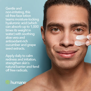 Gentle and non-irritating, this oil-free face lotion teams moisture-locking hyaluronic acid (which can absorb up to 1,000 times its weight in water) with soothing aloe vera and antioxidant-rich cucumber and grape seed extracts. Apply daily to calm redness and irritation, strengthen skin's natural barrier and fend off free radicals.